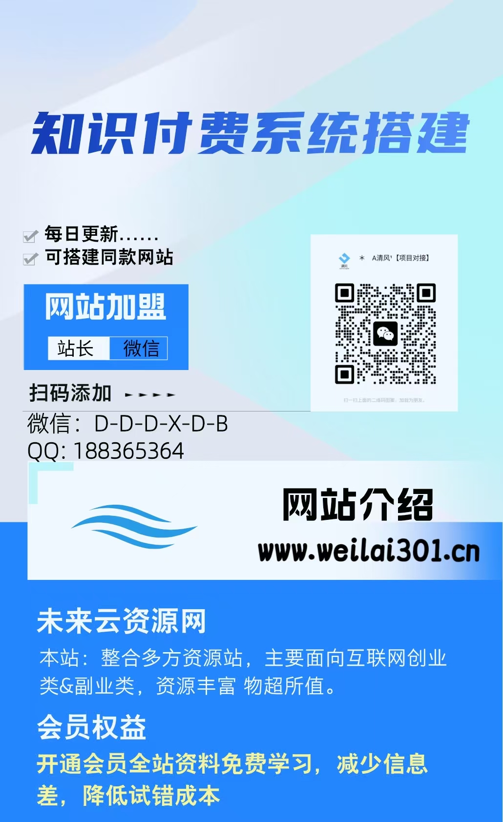 加盟未来云网创,加盟搭建同款知识付费资源网站,实现长期稳定被动收入~